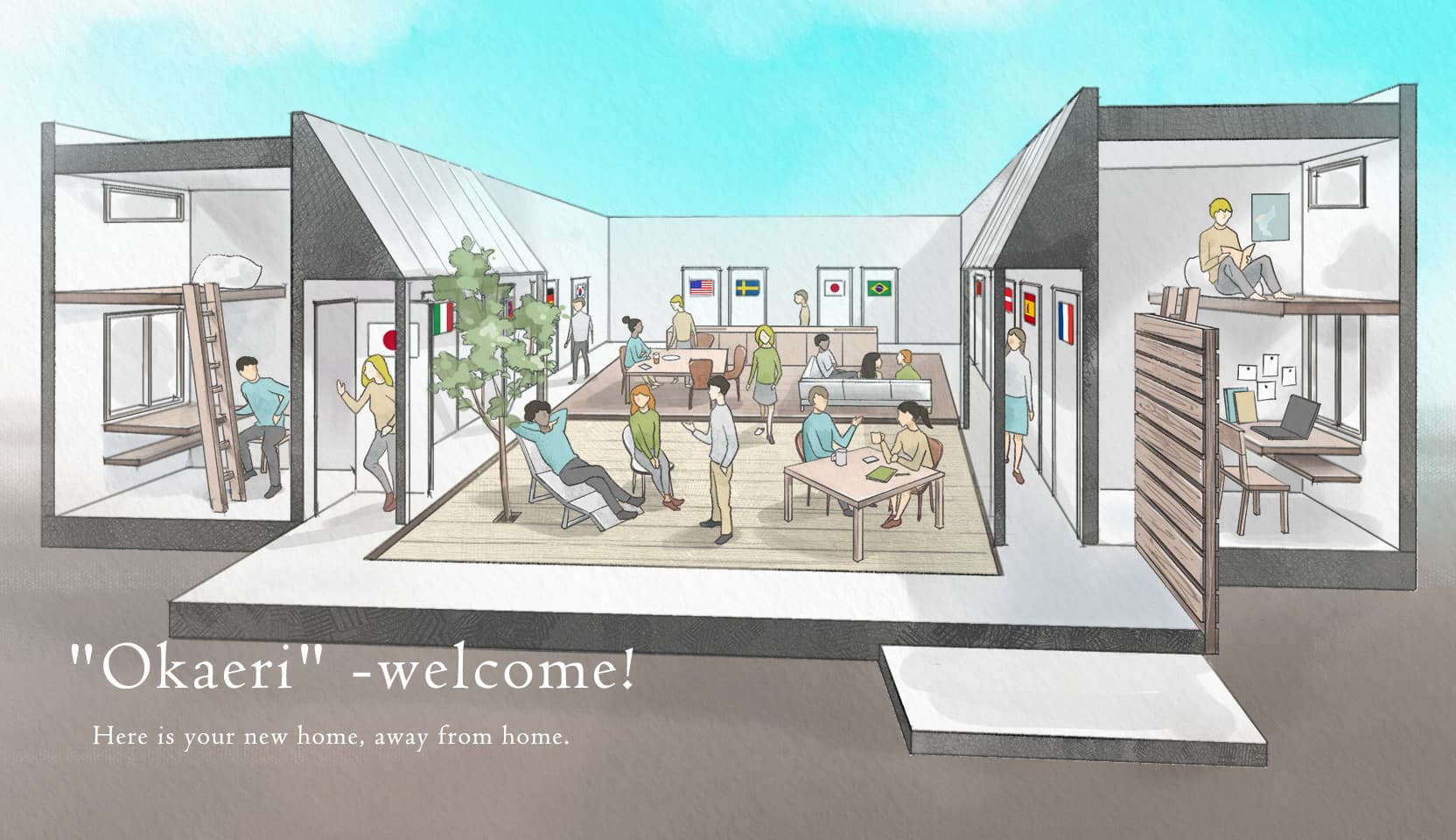Experience the spread of daily multicultural interactions in the share house, especially designed for the community to form.