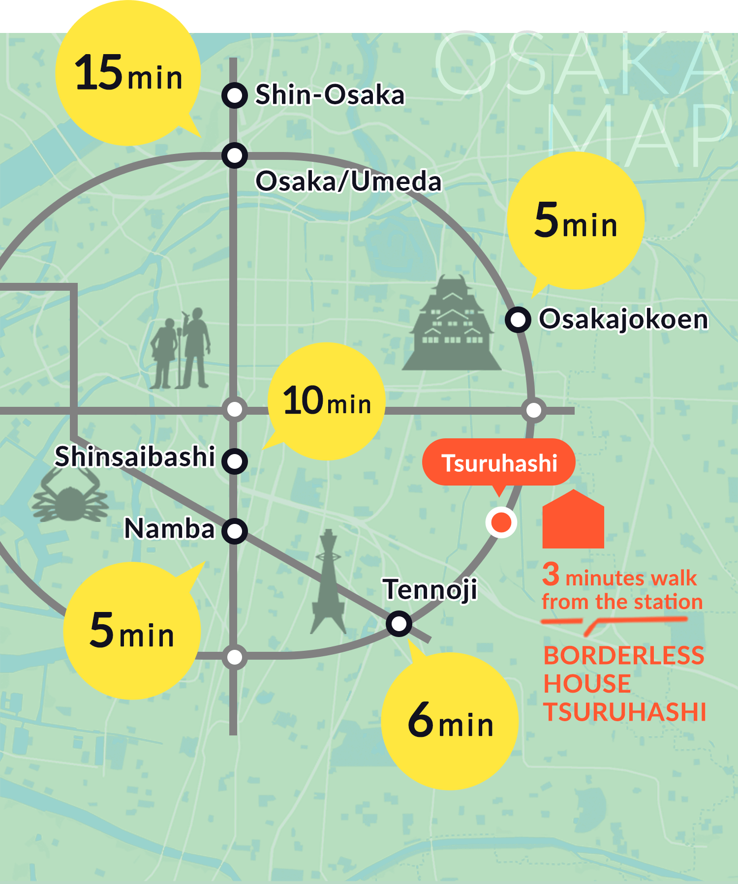 BORDERLESS HOUSE OSAKA-TSURUHASHI1 | International Share House in Central Osaka