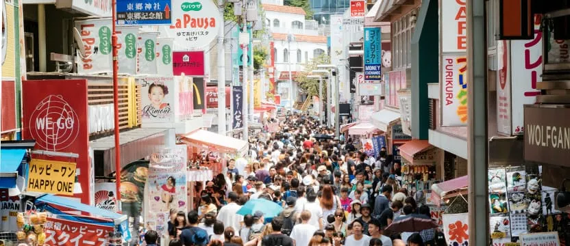 Large department stores like Shibuya 109 and Parco beside entertainment facilities – Shibuya is the birthplace of youth culture. The world-famous busy Shibuya “scramble” crossing and popular meeting places like Hachiko Statue or Moyai Statue are must-see Tokyo sightseeing spots. In Harajuku, weekends are busy - the shopping mall La Foret and the shopping street Takeshita Steet are packed with visitors turning into a festival-like crowd. You can find all kinds of fashionable items on every corner. If you walk a little further, a different atmosphere awaits you – the more calm, grown-up side of this area, Omotesando.
